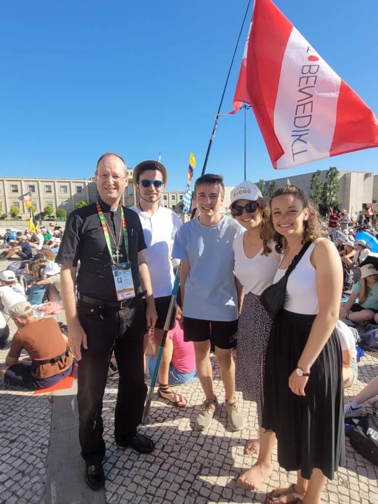 Doch das abwechslungsreiche Programm brachte neuen Elan. Die Kremsmünsterer Gruppe nahm mit ihrer auf einer langen Angelrute befestigte österreichischen Fahne sowohl am Österreicher-Treffen als auch an den Versammlungen der Deutschsprachigen teil, an denen einmal der deutsche Jugendbischof Stefan Oster und ein anderes Mal der österreichische Jugendbischof Stephan Turnovszky einen Impuls sowie eine Eucharistiefeier hielten. Auch beim Nationaltreffen der US-Amerikaner war Treffpunkt Benedikt dabei und war beeindruckt von der Aufbruchsstimmung und dem Vortrag des bekannten youtube-Bischofs Robert Barron.