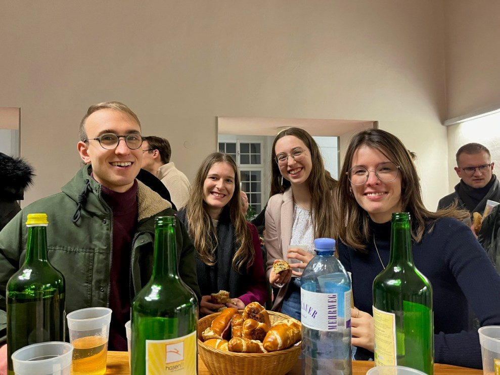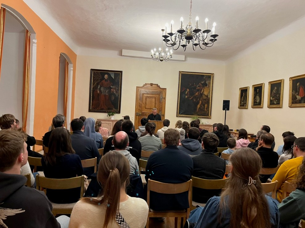Zuerst stimmten wir uns wie immer mit Kaffee und Tee auf den Abend ein. Danach sprach Abt Ambros sehr persönlich in seinem Vortrag über sein Gebetsleben in der Kindheit, im Gymnasium und später als Mönch und Priester. Als er dann später Abt wurde, hat sich sein persönliches Gebet wieder verändert und er wurde der „erste Beter“ des Klosters. Jeden Tag stand und steht er schon bald auf, um alle seine Anliegen vor Gott hinzulegen.