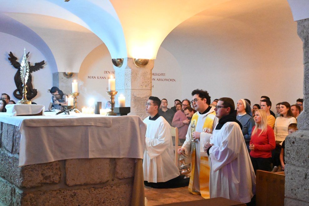 Es folgte eine besinnliche Zeit der Anbetung in der Michaelskapelle. Die Stille und die Möglichkeit zur Einkehr luden dazu ein, sich ganz auf Gott zu konzentrieren. Zudem gab es die Gelegenheit, das Sakrament der Beichte zu empfangen.