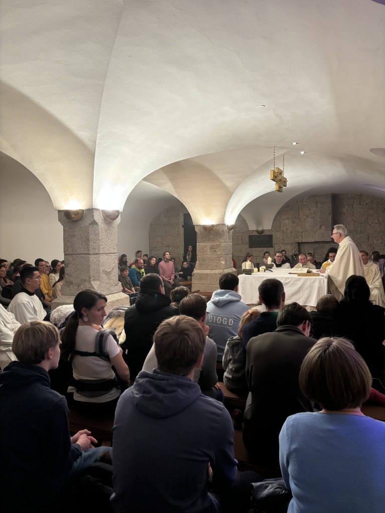 Der geistliche Höhepunkt des Treffpunkts war die feierliche Hl. Messe mit Abt Ambros. Seine Dankbarkeit und Verbundenheit mit der jungen Generation prägten die Atmosphäre dieses besonderen Gottesdienstes.
