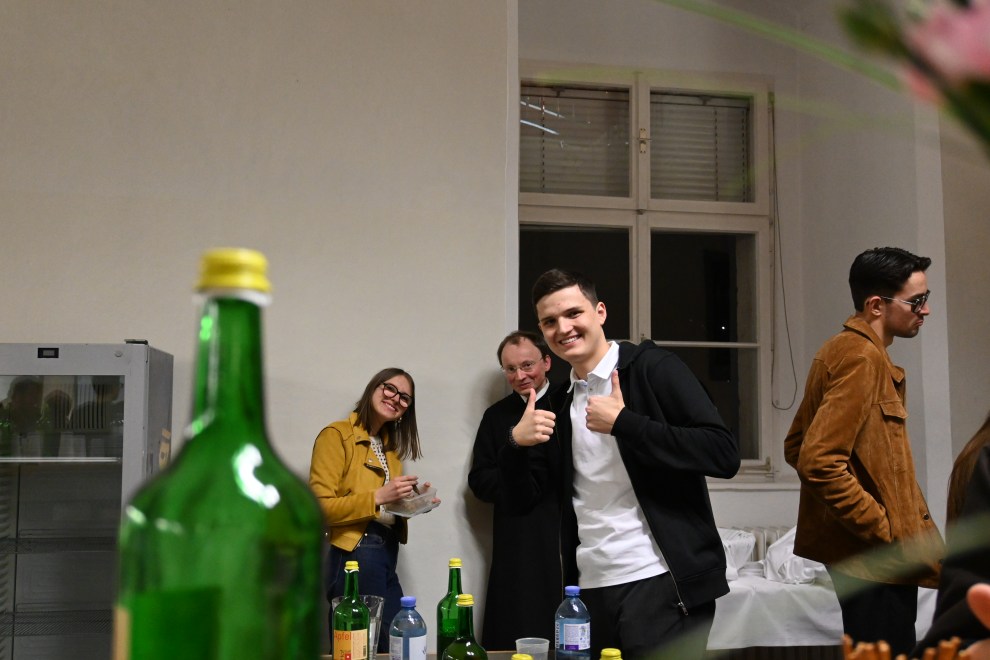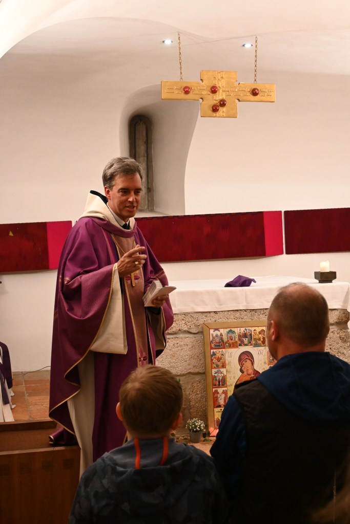 Der anschließende Vortrag wurde diesmal von Pater Maximilian gehalten, der uns Tipps zur Christus Begegnung mit Hirn, Herz und Hand gab. Nach der Anbetung und der Heiligen Messe mit Predigt von Abt Bernhard, in der er mit uns sein Abt-Versprechen und Weihegebet durchging, gab es wieder eine Agape. Den Abend schlossen wir mit der Komplet ab.