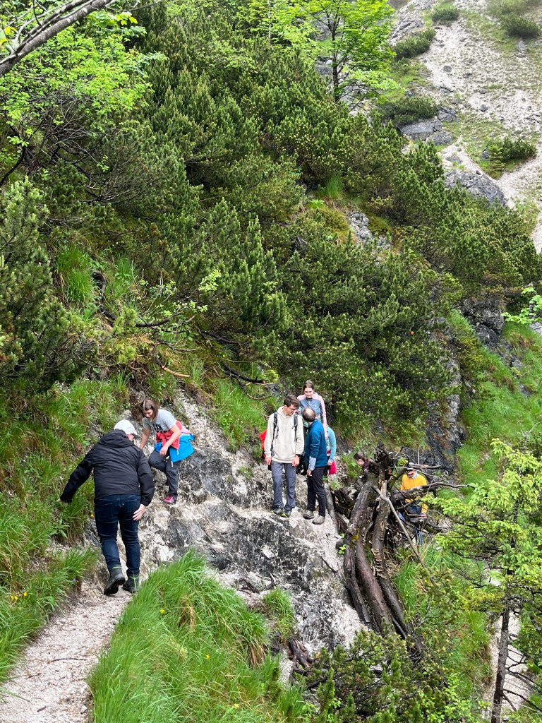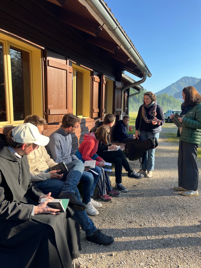 Der Samstagvormittag stand ganz im Zeichen der Stille: Nach der üblichen Laudes und dem Frühstück machten wir uns auf dem Weg zu einem Wasserfall um dort unter Anleitung von P. Anselm einen Vormittag der Stille mit lectio divina zu verbringen. Nach dem Mittagessen wagten sich einige in den sehr „frischen“ Almsee, während andere die Gelegenheit nutzten, mit dem Ruderboot hinauszufahren.