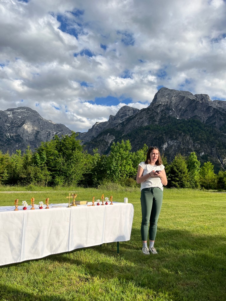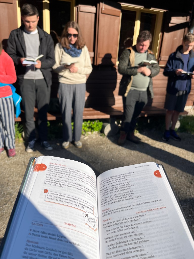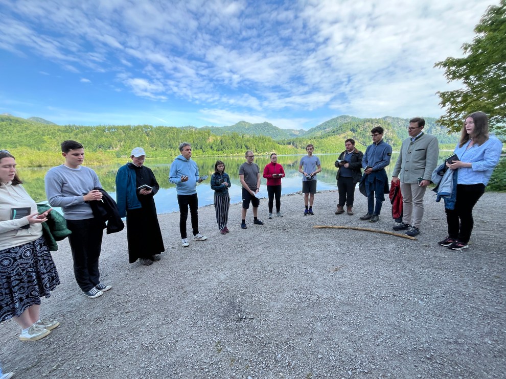 Am Freitag stand neben gemeinsamen Gebetszeiten das Naturerlebnis im Vordergrund: Neben einer hungrig machenden Bergwanderung mit Andacht und einer Geburtstagsfeier wurde am späten Nachmittag noch eine Messe mit P. Anselm gefeiert. Da in diesen Tagen nie früh ins Bett gegangen wurde, machten wir an diesem Tag im Kerzenschein noch eine kleine Nachtprozession an das Ufer des Almsees.