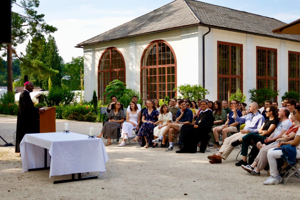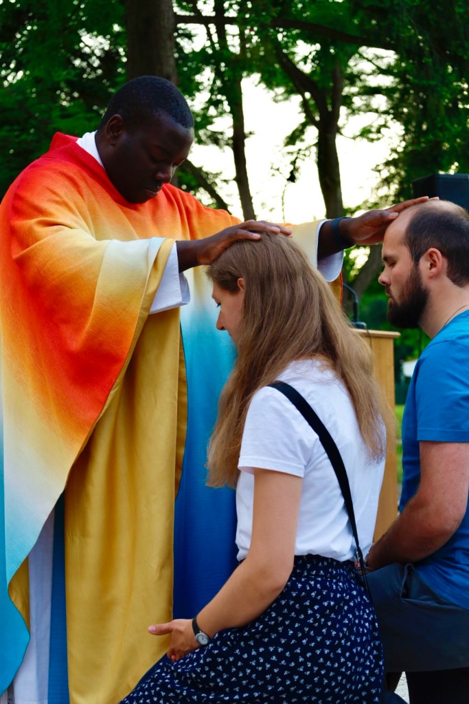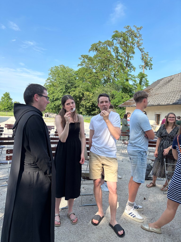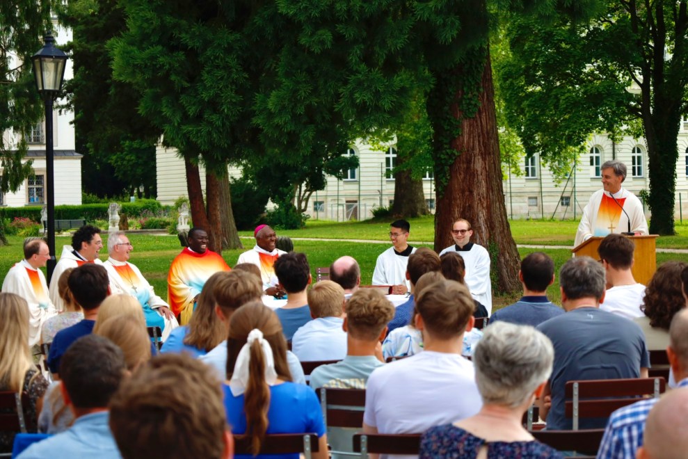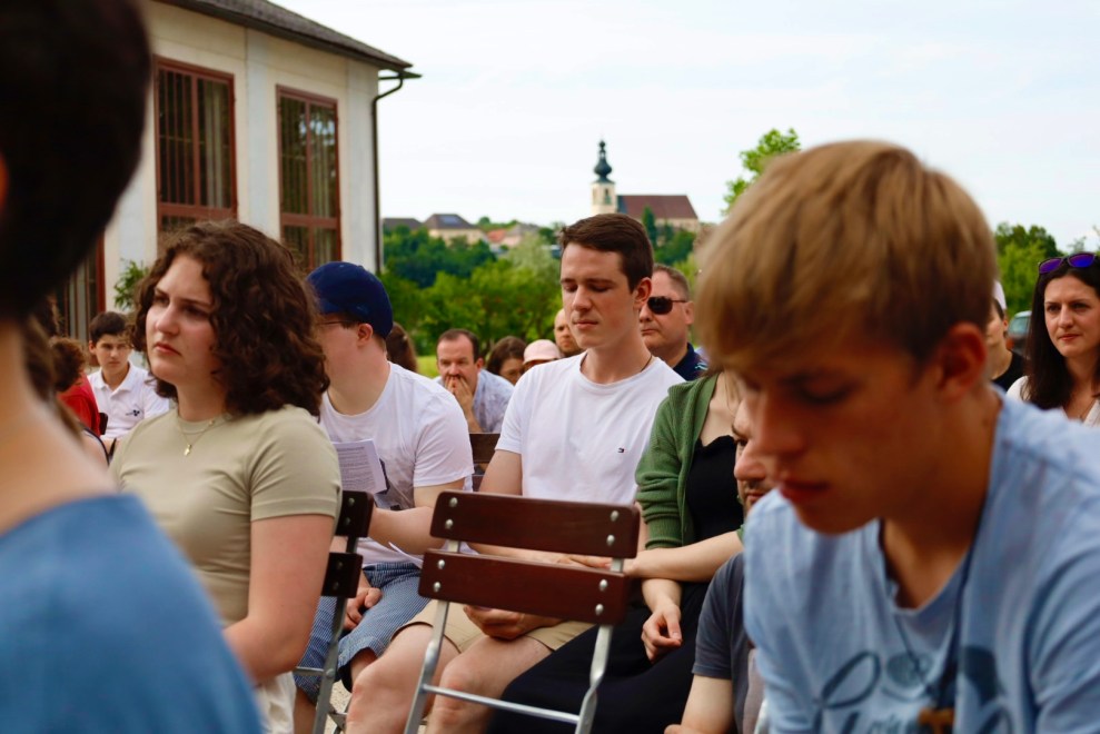 Zeit für Stille und Begegnung mit Gott gab es in der Anbetung am späten Nachmittag und auch wie üblich die Gelegenheit zur Beichte, die dankbar angenommen wurde. Der spirituelle Höhepunkt war sicher die Heilige Messe im Schatten des Mammutbaumes mit dem anschließenden Primizsegen von Alex Matovu aus Uganda, der heuer für die Diözese Linz geweiht wurde.
