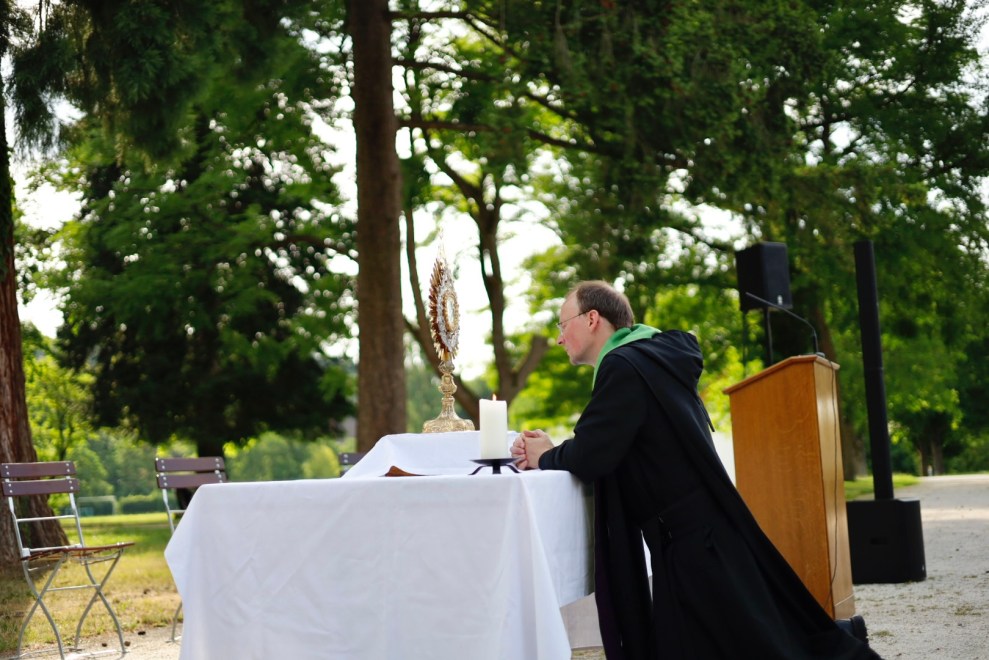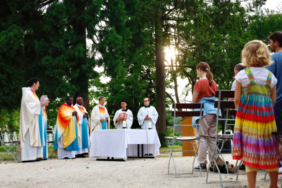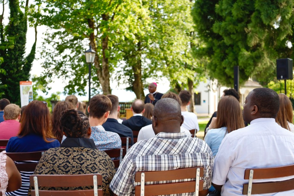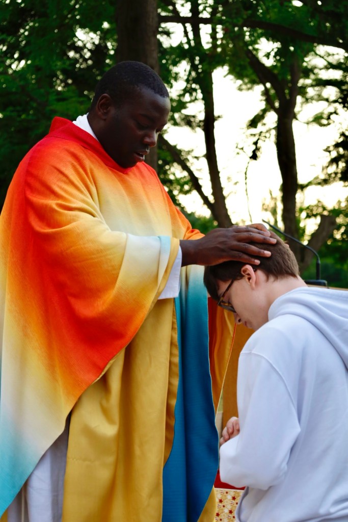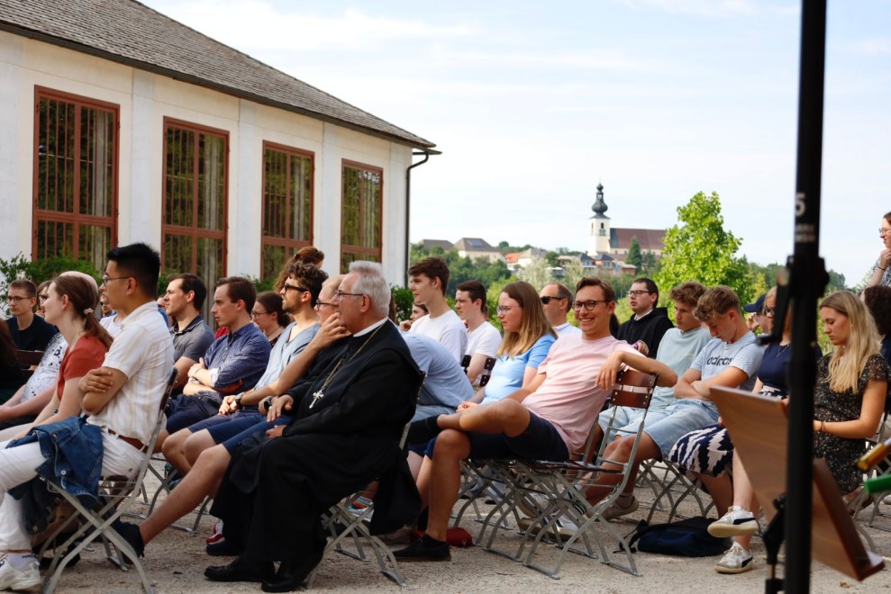 Zeit für Stille und Begegnung mit Gott gab es in der Anbetung am späten Nachmittag und auch wie üblich die Gelegenheit zur Beichte, die dankbar angenommen wurde. Der spirituelle Höhepunkt war sicher die Heilige Messe im Schatten des Mammutbaumes mit dem anschließenden Primizsegen von Alex Matovu aus Uganda, der heuer für die Diözese Linz geweiht wurde.