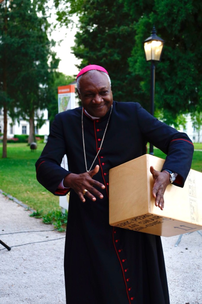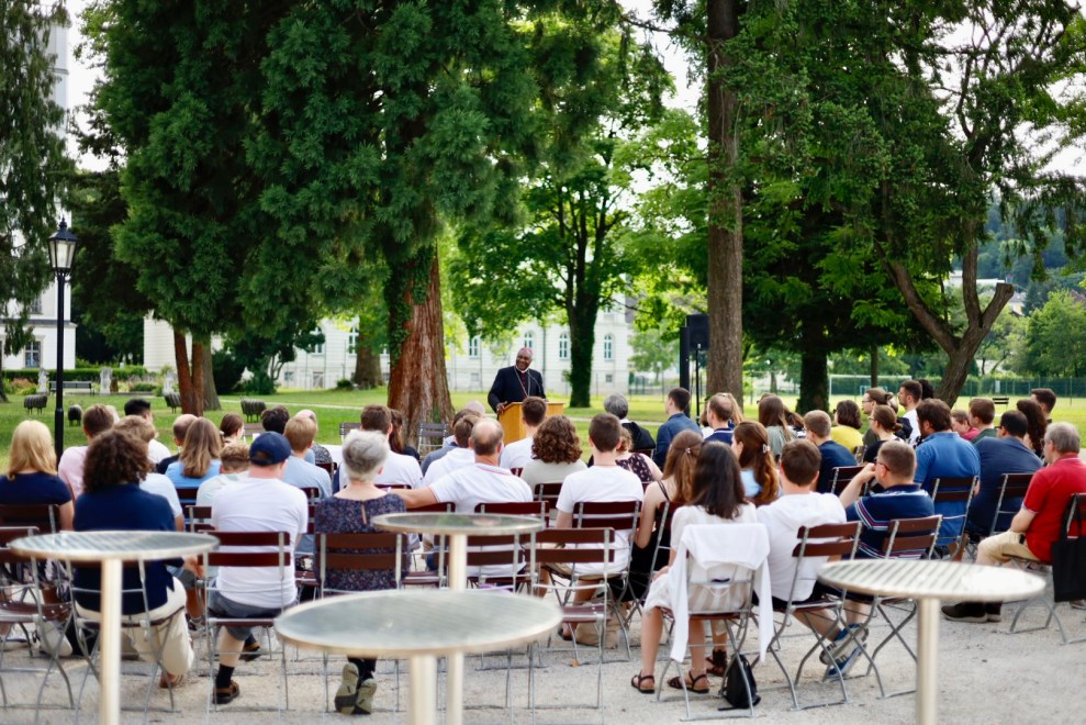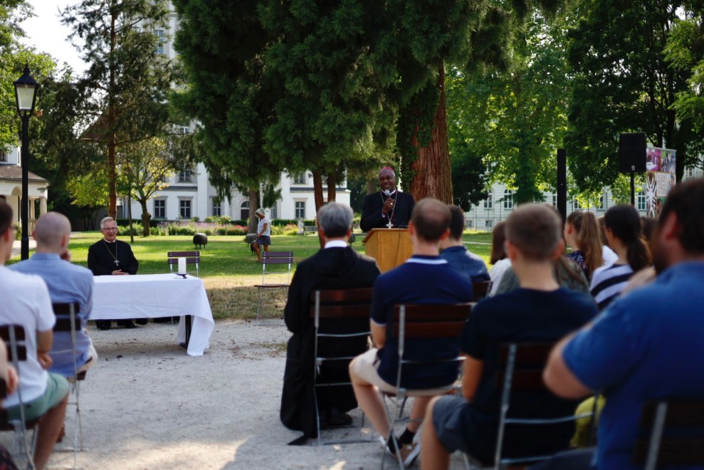 Um sich physisch abzukühlen und geistig aufzuwärmen startete das Sommerfest um 16:30 mit einem „Ice Talk“ über die Vielfalt und Lebendigkeit der Weltkirche – angeregt durch persönliche Erfahrungen. Besonders beeindruckend waren die anschließenden Erzählungen von Bischof Joseph-Marie Ndi-Okella aus Kamerun. Uns wurden fazinierende Einblicke in die Kirche Afrikas geschenkt und und daran erinnert, wie sehr uns der gemeinsame Glaube trotz ganz unterschiedlicher Kulturen verbindet!