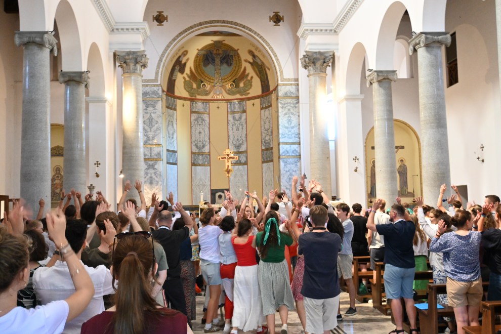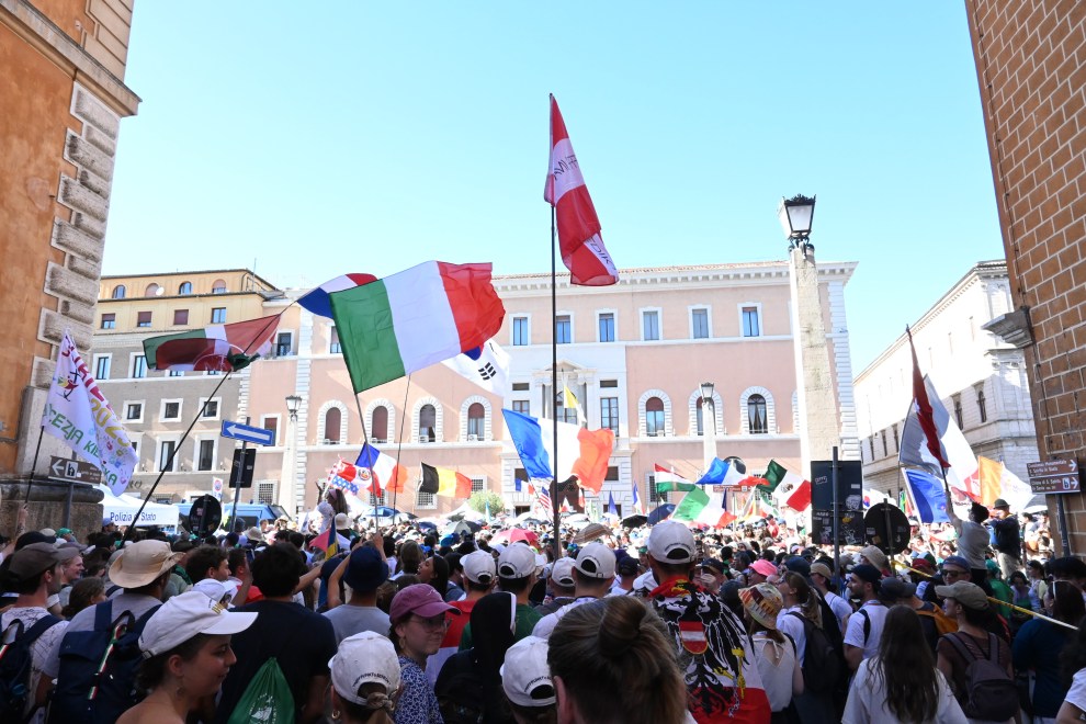 Der Donnerstag stand im Zeichen des Apostels Paulus und der hl. Francesca Romana, deren Gräber wir Pilger besuchten – samt Messe in St. Paul und einem Impuls von dem Abt des dortigen Benediktinerklosters, Donato Ogliari. In der Kirche Santa Francesca Romana beteten wir am Grab der beliebten Heiligen und erhielten eine Einführung von P. Benedetto, der die dortige Gemeinschaft der Olivetaner-Benediktinermönche leitet. Santa Maria Maggiore und die Bischofskirche des Papstes, die Lateranbasilika, waren weitere Stationen. Ein Teil der Gruppe nahm abends in der deutschsprachigen Pfarre „Santa Maria dell’Anima“ beim Nightfever teil, während andere sich ins bunte Treiben hunderttausender junger Pilger in den Straßen Roms warfen.