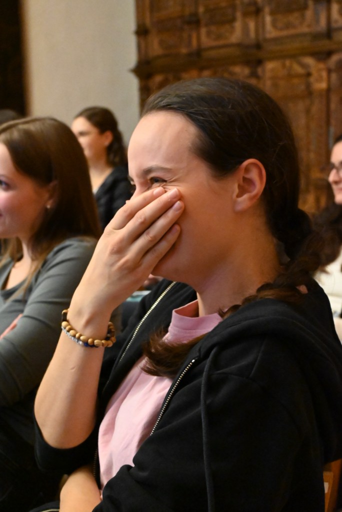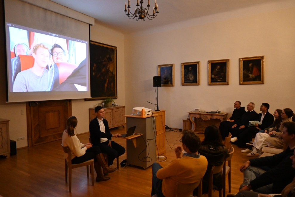 Anschließend stärkten sich alle bei der Agape bevor es zur Fotopräsentation über die Rom-Wallfahrt im Sommer wieder in den Wintersaal ging. Das Highlight der Vorstellung waren definitiv die zahlreichen „Memes“, die den Lachpegel konstant hochhielten.