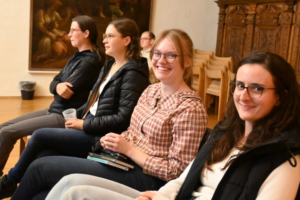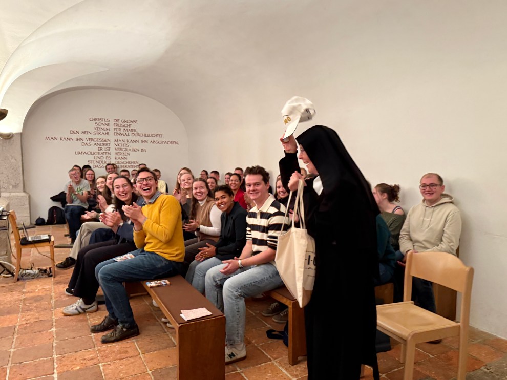 Das neue Jahresprogramm steht unter dem Motto „Gott suchen“, das auch der Wahlspruch von Abt Bernhard ist. Schon beim Tea Talk wurde fleißig über die persönliche (Gott-) Suche diskutiert, zum anschließenden Vortrag hatten wir eine richtige Expertin in der Gott-Suche eingeladen: Sr. Michaela Puzicha OSB. Sie lebt seit Jahrzehnten als Benediktinerin in Deutschland und gilt als eine der weltweit führenden Forscherinnen zum heiligen Benedikt. Sie erzählte uns über die Gottsuche aus der benediktinischen Perspektive, betonte aber auch, dass es kein Rezept gibt. Vielmehr müsse jeder seine eigenen Methoden finden. Sich auf die Gottsuche einzulassen sei immer ein Risiko, denn es gibt kein Navi. Aber Gott sucht auch uns, es geht darum offen zu sein für Gottes Suche nach uns, er will uns finden, doch dafür braucht er unser Ja.
