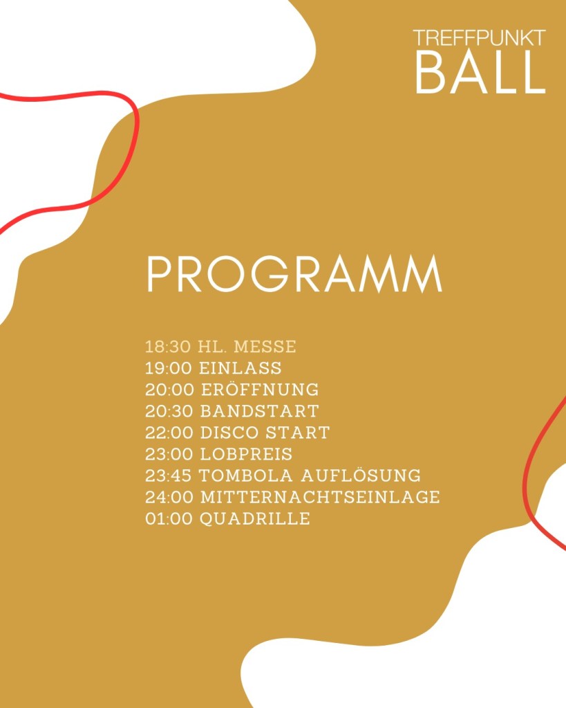 Nota bene! Zusätzlich zum klassischen Ballprogramm laden wir zu einer gemeinsamen Messe um 18:30 in der Michaelskapelle ein.
